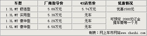 據(jù)海馬汽車4S店銷售人員介紹,在丘比特4款車型當中,售價5.89萬元的1.3L手動舒適型性價比較高,也已成為丘比特銷售的主力車型,可以享受1500元的現(xiàn)金優(yōu)惠。其他兩款1.3L車型和1.5L車型均無現(xiàn)車,如想預訂需要交2000元訂金,到車時間為1個月左右。