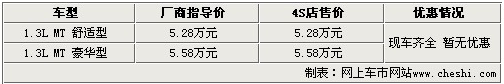 江淮同悅RS上市至今,在自主品牌經(jīng)濟(jì)型家轎中堪稱典范,2009年熱銷61921輛,在同級別車型中樹立了銷售業(yè)績增速的新標(biāo)桿。同時,在各中車輛評選大賽中,同悅車型也獲得了傲人的成績,讓更多的人知道中國自主品牌的實(shí)力。近期,網(wǎng)上車市走訪了江淮汽車4S店,對同悅RS目前的現(xiàn)車情況做了了解,具體信息請參考下表: