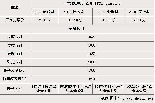 國產(chǎn)奧迪Q5在輪轂的搭配方面做的比較講究,每款車型配備的輪轂都不一樣,單看輪轂就可以區(qū)分出4款車型的配置,頂配版的豪華型更是選擇了19寸的超大輪轂。