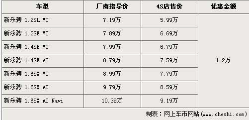 雪佛蘭新樂騁是在老款樂騁的基礎(chǔ)上,針對中國市場需求升級的一款A(yù)0級轎車。無論外觀、內(nèi)飾還是油耗方面,新樂騁都有著出色的表現(xiàn)。它的競爭對手是POLO、206等車型,但與其對手相比,新樂騁表現(xiàn)得并不突出。近日據(jù)網(wǎng)上車市價格系統(tǒng)檢測顯示,新樂騁全系有8000元的優(yōu)惠幅度,具體車型價格請看下表: