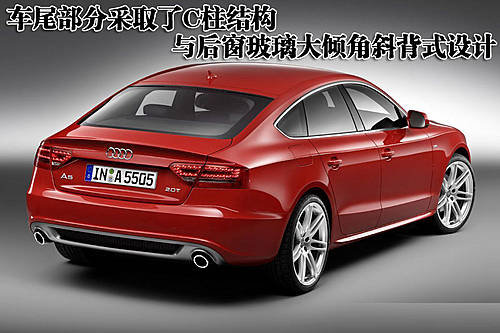 奧迪A5 Sportback四門轎跑車除加長(zhǎng)軸距以外,依然延續(xù)奧迪A5雙門轎跑版的大部分車身結(jié)構(gòu)。不過在車尾部分采取了對(duì)C柱結(jié)構(gòu)與后窗玻璃改動(dòng)最小的大傾角斜背式設(shè)計(jì),增加了實(shí)用性。
