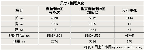國(guó)產(chǎn)新一代E級(jí)加長(zhǎng)版車型相比目前國(guó)內(nèi)銷售的原裝進(jìn)口車款在長(zhǎng)度上也有明顯變化,整車長(zhǎng)度從4.868米增加到5.012米、車身寬度略增1mm高度減少了7mm前后輪距也分別減少了5mm。前后軸距加長(zhǎng)了140mm整。如果您對(duì)目前銷售的進(jìn)口原裝奔馳E級(jí)轎車軸距不太滿意,那么不妨期待一下北京奔馳國(guó)產(chǎn)化的新E級(jí)加長(zhǎng)版車型。