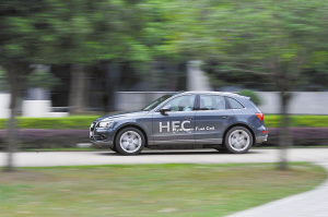 在科技日上,一款令人意想不到的氫燃料電池車——奧迪Q5 HFC(Hydrogen Fuel Cell)氫燃料電池車也出現(xiàn)在試乘車型隊(duì)伍中。我們試乘后的感受是,與內(nèi)燃機(jī)Q5相比,這款車的動力毫不遜色,聲音非常安靜,而且這款車排出的只有水而沒有任何廢氣。