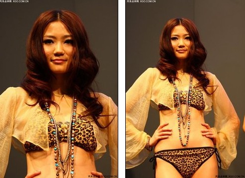 在北京車展的現(xiàn)場我們驗(yàn)證這個(gè)質(zhì)疑確屬事實(shí),此次北京車展中孔燕松、孔瑤竹(孔燕松的妹妹)均以模特的身份出現(xiàn)在了克萊斯勒的展臺(tái),從我們拍回的近距離照片來看,孔燕松的皮膚并不是太好,讓一個(gè)有輕度密集物質(zhì)恐懼癥的我看到了有些想起雞皮疙瘩的感覺,不知道大家看過之后是什么感覺,俗話說照片是三分照、七分P,這里所說的P是指photoshop軟件,這樣就說明網(wǎng)上流傳的孔燕松的照片還是經(jīng)過處理的照片。