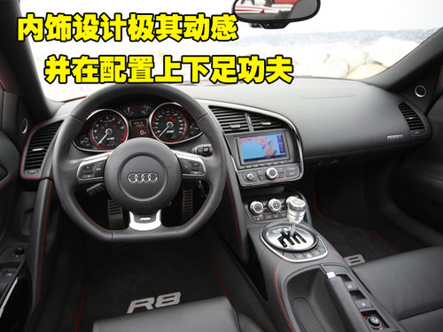 在內(nèi)裝飾設計上也有不同于V8車型的設計,全黑色調(diào)搭配鋁以及碳纖維裝飾,營造動感豪華的氛圍。在配置上也十分奢華,奧迪看家的配置幾乎都可以在奧迪R8 V10超跑的身上找到。