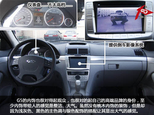 GPS、倒車影像、DV……這些是G5都會(huì)擁有的配置,只是G5的液晶顯示屏所顯示出的影像并不是那么的高端……而且這儀表盤很不像是一個(gè)高端品牌所應(yīng)該有的樣式。