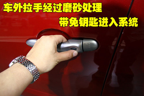 雷諾新風(fēng)景的外車門拉手經(jīng)過磨砂處理,觸摸時手感很好。這款車的外部開啟方式為“拉動式”,其整體的做工比較精細(xì),在反復(fù)開啟車門時發(fā)現(xiàn),車門把手與連接處沒有松動的跡象,并且開啟時手感比較厚重。
