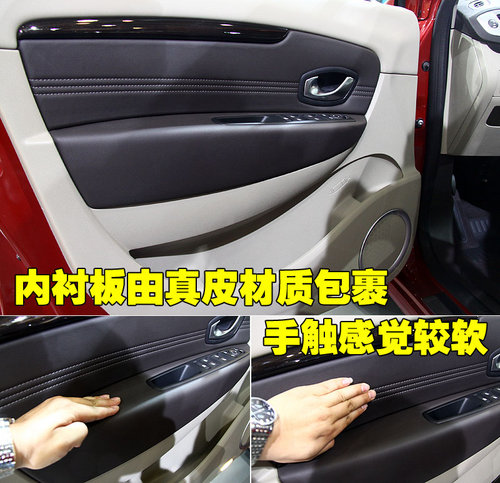 雷諾新風(fēng)景的車門內(nèi)板采用了真皮材質(zhì)包裹,手觸感覺軟硬度適中,在長時間駕駛車輛時,手臂長時間擱置不會感到不適。