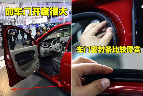 雷諾新風(fēng)景駕駛席一側(cè)的車門完全打開后,車門開啟角度很大,無論何種身材的消費者在上下車時都會比較輕松。車門四周采用雙密封條,橡膠密封條手觸感覺比較厚實,與車門緊密貼合時能夠起到很好的密封、隔音的作用,同時也可以達(dá)到在關(guān)門時可以起到很好的緩沖作用。
