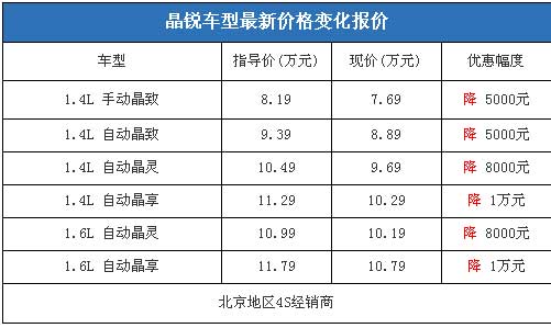 近日,我們從北京地區(qū)的部分上海大眾斯柯達(dá)4S經(jīng)銷商處了解到,目前晶銳1.4L排量車型的現(xiàn)車充足,以紅色車型為主。據(jù)經(jīng)銷商透露,目前購(gòu)車的降價(jià)幅度最高為1萬(wàn)元,并且消費(fèi)者可以獲贈(zèng)店內(nèi)價(jià)值500元的工時(shí)費(fèi)代金卷。