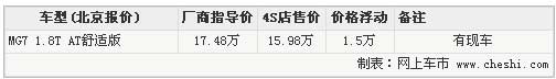 據(jù)名爵汽車4S店銷售人員介紹,目前北京地區(qū)MG7車型的現(xiàn)車并不充足,只有1.8T舒適版手自一體車型有現(xiàn)車,其他車型暫無(wú)現(xiàn)車,如有意向購(gòu)買需要預(yù)訂,訂金為5000元,預(yù)計(jì)提車時(shí)間為一個(gè)月左右。購(gòu)買有現(xiàn)車的1.8T舒適版手自一體車型可以獲贈(zèng)價(jià)值1萬(wàn)5千元的大禮包,其中包括8000元的現(xiàn)金優(yōu)惠和7000元的裝飾贈(zèng)送。