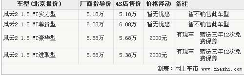 風云2兩廂共有4款車型,指導價為5.18萬-6.08萬。根據奇瑞4S店銷售人員介紹,目前店內銷售的車型只有進取型和豪華型兩款,現在購車即可享受2000元現金優(yōu)惠,此外4S店還贈送三年12次免費保養(yǎng)。