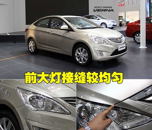 北京現(xiàn)代Verna的外觀更加時尚動感,從整體上來看,這款新車的制造工藝水平延續(xù)了現(xiàn)代車型貫有的細致入微,車身噴漆與各模具制造質(zhì)量均屬上乘。大燈部分與保險杠、發(fā)動機蓋、水箱框架等周圍的接縫非常勻稱。