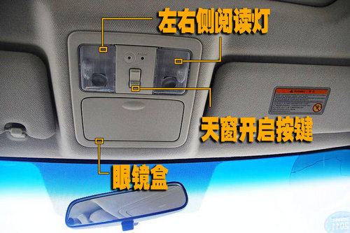 東風(fēng)日產(chǎn)新軒逸兩側(cè)遮陽(yáng)板之間為駕駛席和副駕駛席分別提供了獨(dú)立式的閱讀燈,方便車主與乘員在夜間查看地圖等。閱讀燈前側(cè)配有眼鏡盒。