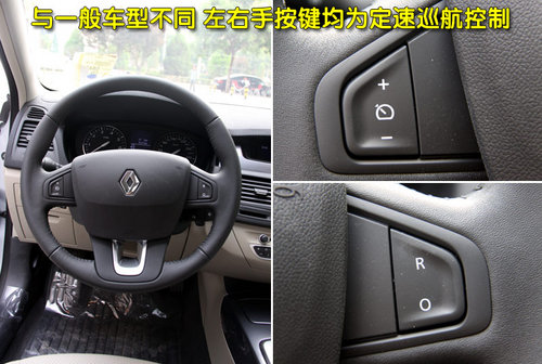 如同外觀一樣,法國人的設(shè)計(jì)永遠(yuǎn)是我們摸不透的,按一般車型來講,方向盤中多會集成音響及定速巡航控制鍵,而新拉古那方向盤的左右手位置均為巡航按鍵。