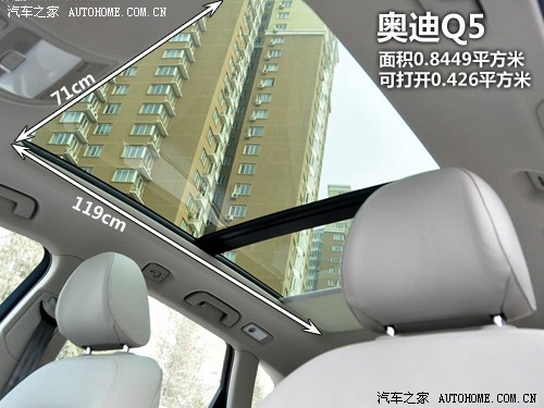 奧迪Q5熱度不減,自上市以來持續(xù)加價(jià)售車,不過我們今天不關(guān)心它什么時(shí)候停止加價(jià),只來看看它的全景天窗是否夠吸引人。應(yīng)該說,跟其他幾款同級別的車型相比,Q5的天窗看起來要更加美觀,因?yàn)樗鼪]有用一根過于明顯的橫梁將天窗一分為二,雖然說后半部分也并不能打開,但至少視覺上沒有阻隔感,整體性要更強(qiáng)。