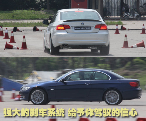 根據(jù)廠家提供的資料顯示,寶馬3系雙門(mén)轎跑/敞篷跑車(chē)前懸加長(zhǎng)了29毫米,后懸加長(zhǎng)了3毫米。前導(dǎo)流板的側(cè)面造型也進(jìn)行了改進(jìn),前端較以前探出更多,以提高行人的安全性。試駕過(guò)程中,給我的感覺(jué)懸架要比寶馬3系四門(mén)轎車(chē)略軟,沒(méi)有了明顯的“砰砰車(chē)”的感覺(jué)。這可能與換裝普利司通的輪胎有一定的關(guān)系,雖然感覺(jué)懸架略軟,但是絲毫沒(méi)有影響操控性。