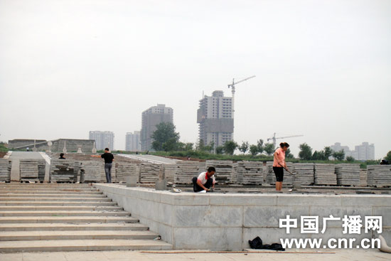 沿著太液池一路向西,在丹陛望月廣場(chǎng)的斜坡上,七八個(gè)建筑工人正在鋪石磚。一位姓孫的工人說(shuō),之前地上鋪的是大塊石板,鋪好后,工人又在上面雕了花紋,整體做了一朵花的造型,差不多得花了1000萬(wàn),這幾天全被揭了下來(lái)。換成了小塊的石磚。說(shuō)起為什么要重新鋪小塊的石磚,這位工人笑了笑,說(shuō),前幾天來(lái)了幾位領(lǐng)導(dǎo)視察,說(shuō)不好看。