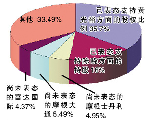 從公開(kāi)表態(tài)的情況來(lái)看,黃光裕陣營(yíng)除了自己的32.47%股權(quán)外,還有黃光裕好友鄭建明2%、表明“挺黃”的內(nèi)地股民歐陽(yáng)雪初方面0.6%的股權(quán)支持,合計(jì)持股大概是35.7%。