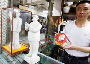 “近兩年,紅色藏品行情每年都以30%~50%的幅度上漲,兩三年就能翻一番!惫葘W(xué)書稱,盡管價(jià)格連漲,卻仍是供不應(yīng)求,這其中尤以上世紀(jì)60年代末到70年代初,唐山出產(chǎn)的各種規(guī)格毛主席瓷塑像最受歡迎——因唐山地震導(dǎo)致該品種存世量小,眼下已是一尊難求,不管是半身像還是全身像,高度上了60公分的話,沒有上萬元根本拿不下。