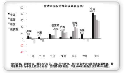 金融海嘯之后,中國、巴西、俄羅斯、印度在經(jīng)濟(jì)增長以及財政上的表現(xiàn)令人刮目相看,股市今年以來平均漲幅逾六成,中國的漲幅超過八成,將成熟國家遠(yuǎn)遠(yuǎn)拋在后面(圖片來源:國際金融報)