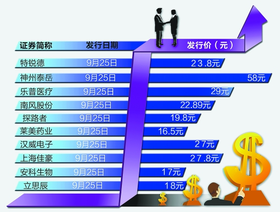 今天,投資者將迎來創(chuàng)業(yè)板新股的第一場盛宴:首批10只新股“十箭齊發(fā)”,中簽率有望比中小板新股大大提高。不過,創(chuàng)業(yè)板十新股發(fā)行市盈率奇高,最低的也有40倍。以發(fā)行價來看,最高的神州泰岳達(dá)到58元,最低的萊美藥業(yè)也有16.5元。