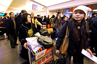 記者在攜程、游易等網(wǎng)站發(fā)現(xiàn),上海至鄭州、濟南、長沙、武漢、沈陽、南昌、南寧等二線城市航線幾乎看不到打折票?梢姡哼\“剛性”需求給航空市場提供了強大支撐,成為航空公司2009年良好的開端。為了分享春運“盛宴”,各航空公司紛紛加大投入,增開航班。東航增開千余個航班,上航增開200多個航班,南航加開5000余個航班。