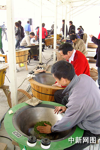 中新網(wǎng)杭州3月26日電(見習記者 王磊 通訊員 郭秀勤)“第一名轉塘街道長埭村黃祖華,得分93.6……”隨著中國國家一級評茶師沈紅落下的話音,2009年杭州市西湖龍井主要產(chǎn)區(qū)西湖區(qū)新科西湖龍井炒茶王誕生。“2009西湖龍井炒茶爭霸賽”于2009年3月25日正式落下帷幕。