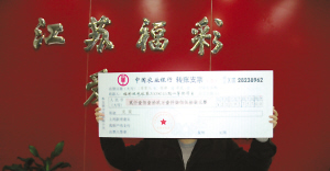 4月2日上午,中獎?wù)邉⒕?化名)來到江蘇福彩中心領(lǐng)走巨獎。