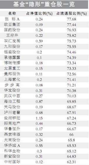但最引人關(guān)注的,還是各基金合計(jì)持有超過上市公司流通盤70%的股票。上述股票的流通盤已經(jīng)幾乎被各家基金完全瓜分,因而成為最純粹的“基金重倉股”。也就是通常所說的“基金全控盤”股票。