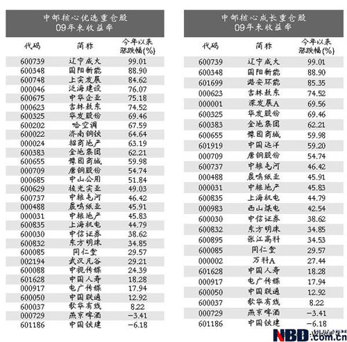 中郵系基金一向以高倉(cāng)位操作而著稱,不過(guò),高倉(cāng)位操作的基金并不只中郵一家,中郵系基金業(yè)績(jī)一馬當(dāng)先秘訣何在?它選擇重倉(cāng)股究竟有何獨(dú)到之處呢?記者查閱中郵系基金2008年年報(bào)發(fā)現(xiàn),中郵系基金4季度重倉(cāng)的地產(chǎn)、能源股漲勢(shì)兇猛,為其成功奪魁貢獻(xiàn)不小。