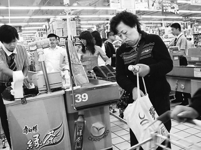 在超市我們發(fā)現(xiàn),和趙大媽一樣,“限塑令”正悄然改變一些市民的購物習慣,拎著環(huán)保袋上超市購物漸漸成為一種時尚。