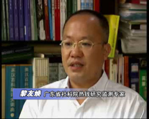 廣東省社科院熱錢(qián)研究監(jiān)測(cè)專(zhuān)家黎友煥:“我們發(fā)現(xiàn)四月份開(kāi)始熱錢(qián)表現(xiàn)出非;钴S的狀態(tài),就是加大流進(jìn)。一直到六月份,我們發(fā)現(xiàn)六月份上旬已經(jīng)出現(xiàn)凈流入狀態(tài),我們跟蹤它的流進(jìn)速度,它呈現(xiàn)加速度流進(jìn)的狀態(tài),而且六月份到現(xiàn)在這個(gè)速度是前所未有的,是02年跟蹤到現(xiàn)在最厲害的速度,但是目前的總量還沒(méi)有像07年 08年流進(jìn)速度的總量!
