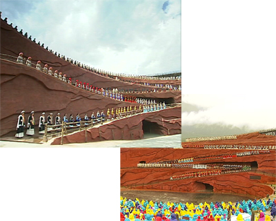 記者:“我現(xiàn)在是在麗江海拔3100米,玉龍雪山的半山腰,過去這里只是普通的山洼洼,但是從2006年7月開始,印象系列的第二部作品《印象麗江》在這里演出,把這里變成了世界上海拔最高的實景演出場地,從此之后演出每天進行,到現(xiàn)在已經(jīng)有200萬名觀眾觀看了演出,吸引他們的是什么呢?”