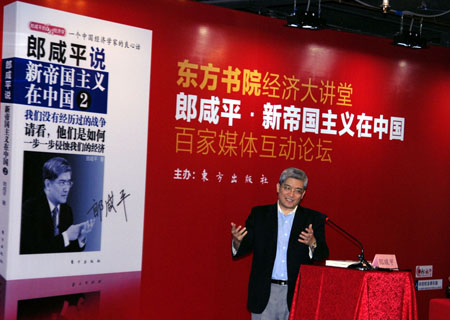郎咸平警示,華爾街貪婪給中國(guó)及歐洲造成危機(jī),他們?yōu)樽分鹄媸遣粫?huì)顧及道德責(zé)任的,中國(guó)不應(yīng)該忽略或是低估“新帝國(guó)主義”操縱經(jīng)濟(jì)所帶來(lái)的負(fù)面影響!拔C(jī)本身不可怕,只要把危機(jī)說(shuō)透了,就不會(huì)再有危機(jī)!崩上唐秸f(shuō)。