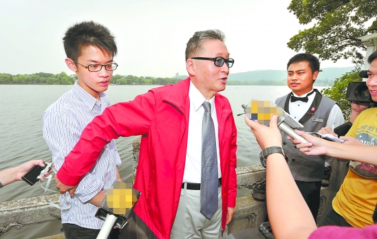 昨天下午,杭州劉莊,只睡了4個小時的李敖在接受完省領導接見、媒體訪問和午餐以后,本來已經(jīng)回房午休了,結(jié)果中途他拉著兒子的手出來,兩個人悄悄地走到湖邊欣賞風景。那時,留在劉莊的記者所剩不多,看到父子兩個親昵交談的背影都有點不好意思上前打擾。終于有人鼓起勇氣和李敖搭話,他就感慨:“我們一家人其實從來沒一起出來旅游過,這次以后也許也沒有更多的機會了!庇浾弑桓腥玖,舉起相機為他們父子在湖邊留下合影。