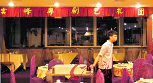 “文革”后,白云峰又操起了唱戲的老行當(dāng)。12年前,白云峰放棄了國(guó)營(yíng)劇院的鐵飯碗,領(lǐng)著一班樂(lè)師和演員,組建了云峰粵劇藝術(shù)團(tuán)!皯虬唷钡闹饕枧_(tái),除了到鄉(xiāng)下慰老臨時(shí)搭臺(tái),便是城里的茶樓飯館。白云峰操辦“戲班”盡心盡力,集劇團(tuán)的老板、師傅、編劇、導(dǎo)演于一身。