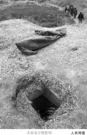 陳冬等人打算打個(gè)持久戰(zhàn)。他們先在附近租了間房子,然后購買了抽風(fēng)機(jī)、抽水泵、鐵鍬、礦燈等盜墓工具,放在屋內(nèi)。在白天,陳冬等人就在房間休息,一到晚上,他們就偷偷來到大云山上。這個(gè)海拔只有數(shù)十米的山在這片平原上顯得非常突兀,但是,陳冬知道,古墓群主要就集中在這個(gè)大云山。