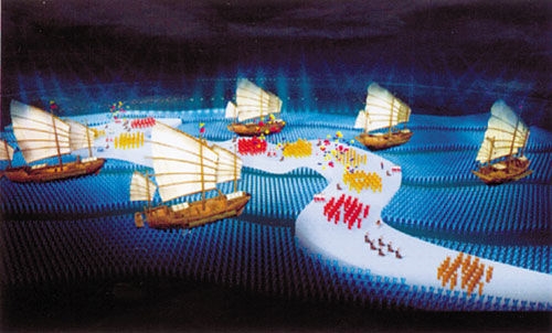 翻開那本厚實(shí)的“標(biāo)書”,不少圖片令人感覺“似曾相識”,如夢似幻的海上絲綢之路、揚(yáng)帆遠(yuǎn)航的鄭和寶船、翩翩飛舞的敦煌飛天……這樣的場景從2008年8月8日那天起,鐫刻在許多人的記憶中。不過,這可不是北京奧運(yùn)會(huì)開幕式的“拷貝”,翻回“標(biāo)書”的封面,“2005年7月28日”的字眼讓人確信,這份方案比北京奧運(yùn)會(huì)開幕式早了三年多。