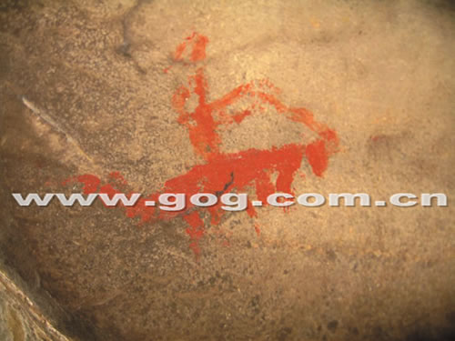 據(jù)介紹,去年12月16日,貴州省考古所所長助理李飛、研究員楊洪在普定縣考古所所長陳發(fā)武帶領(lǐng)下,到化處鎮(zhèn)考古時,無意中在該鎮(zhèn)中學對面的空山腳下巖石上發(fā)現(xiàn)一些紅色印跡,經(jīng)仔細辨認后,這些紅色印跡被確認為巖畫。隨后,幾位考古專家又繼續(xù)往半山坡上尋找,共發(fā)現(xiàn)了10余幅巖畫。這些古巖畫中,許多畫清晰可辨,有栩栩如生的小狗,有耀武揚威騎馬的將軍等等。