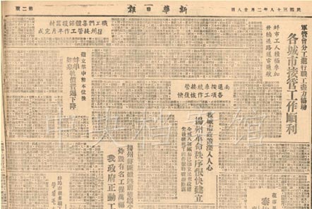 3.1949年2月28日,《新華日?qǐng)?bào)》第二版關(guān)于各城市接管工作的報(bào)道