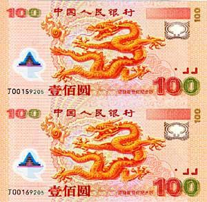 為了迎接新世紀(jì)的到來,中國人民銀行于2000年發(fā)行了迎接新世紀(jì)千禧年雙龍紀(jì)念鈔連體鈔,裝幀冊的發(fā)行量為10萬冊,面值為200元。