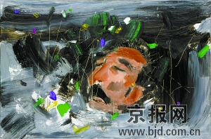 “您年輕時(shí)喜歡魯迅,視他為精神父親。油畫《野草》,魯迅的頭像和野草一起生長(zhǎng)在大地上。讓人觸目驚心。”