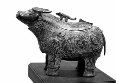一件春秋犧觥青銅器仿制品代表上海博物館的心意,一幅清院本《清明上河圖》復制品象征了臺北故宮博物院的濃情,這是昨天臺北故宮博物院院長周功鑫一行來到上博參觀,雙方互贈的禮物。