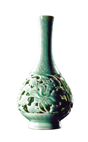 除了八方蓋盒,此次香港蘇富比春拍推出的明宣德青花藏文“平安頌”高足碗,預(yù)計(jì)成交價(jià)超過(guò)2000萬(wàn)港元,清乾隆粉青釉浮雕芭蕉葉鏤空纏枝牡丹圖長(zhǎng)頸膽套瓶,估價(jià)1500萬(wàn)至2000萬(wàn)港元,現(xiàn)今只有一件造型紋飾與它完全一致的玲瓏瓶,目前藏于北京故宮博物院。而這些拍品同屬一個(gè)專(zhuān)場(chǎng)——“玲瓏八寶——?dú)W洲私人清宮御瓷收藏專(zhuān)場(chǎng)”。
