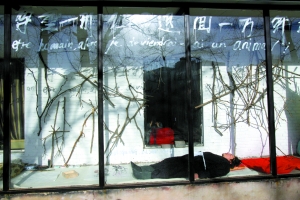 昨日下午798南門附近799藝術空間櫥窗內,藝術家郝光在此搭起了帳篷,并移居于此。這個被郝光命名為“退一萬年櫥闊天空”的行為藝術,是藝術家維權事件的進一步升級,郝光想借此表示對798物業(yè)的抗議。對此,798藝術區(qū)建設管理辦公室主任陳勇利表示,郝光與物業(yè)的糾紛屬于經濟合同糾紛,物業(yè)方七星集團已經起訴至法院,屆時會通過法律來裁決。