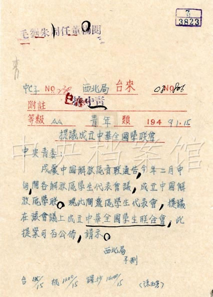1949年3月1日至6日,中華全國學(xué)生第十四屆代表大會在北平召開。會上正式成立了中華全國學(xué)生聯(lián)合會(簡稱全國學(xué)聯(lián)),討論制定了《中華全國學(xué)生聯(lián)合會章程》,選舉劉希圣等36人組成全國學(xué)聯(lián)執(zhí)行委員會。會議確定了全國學(xué)生聯(lián)合會的任務(wù)是在中國共產(chǎn)黨的領(lǐng)導(dǎo)下,進(jìn)行愛國主義和共產(chǎn)主義宣傳教育,幫助同學(xué)進(jìn)步和成長,做黨和政府聯(lián)系同學(xué)的橋梁和紐帶,維護(hù)同學(xué)正當(dāng)利益,加強(qiáng)各民族同學(xué)團(tuán)結(jié),發(fā)展同各國學(xué)生和學(xué)生組織的友誼和合作。全國學(xué)聯(lián)實行團(tuán)體會員制,全國學(xué)聯(lián)的最高權(quán)力機(jī)關(guān)是全國學(xué)聯(lián)代表大會。