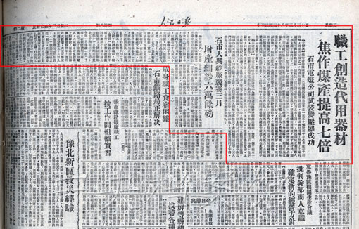 3. 1949年3月30日,《人民日報》關(guān)于焦作煤產(chǎn)提高七倍及石市紗廠增產(chǎn)細(xì)紗六萬余磅的報道