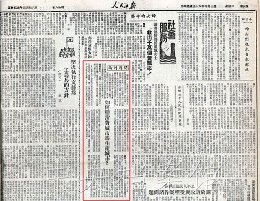 4. 1949年4月3日《人民日報》發(fā)表的問題討論:如何變消費(fèi)城市為生產(chǎn)城市