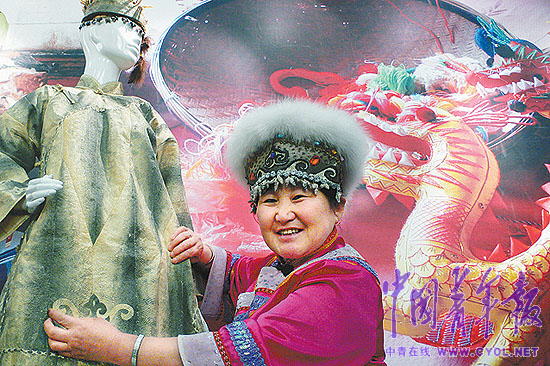 “我做的是上等貨!庇任镍P一臉得意地說。世界各地的博物館,也慕名派人找她定貨。一個(gè)來自瑞士某博物館的老太太,拿著兩套小孩的魚皮衣服就樂壞了,不住地夸她:“哎呀,你做的太好看啦!”